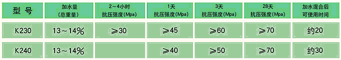 *本品采用进口快硬技术,特种水泥,配以复合外加剂,经工厂专业设备配料、混合、包装,现场只需加入水搅拌均匀即可浇筑。